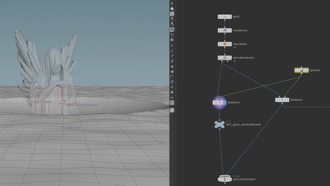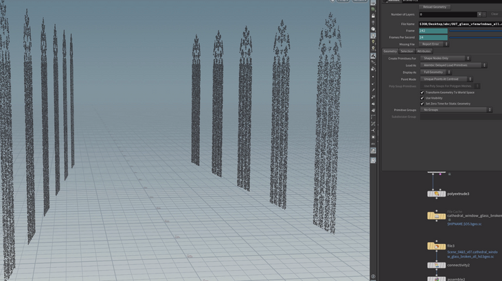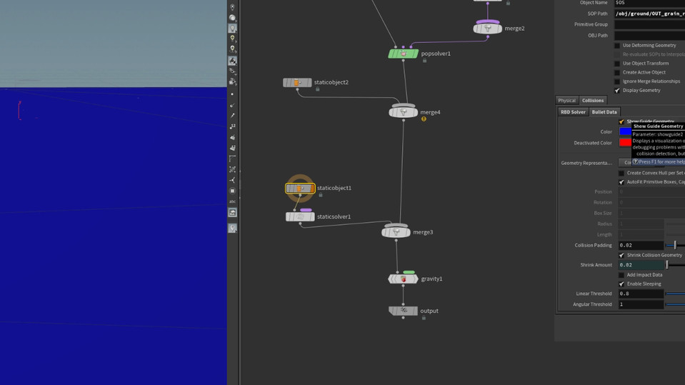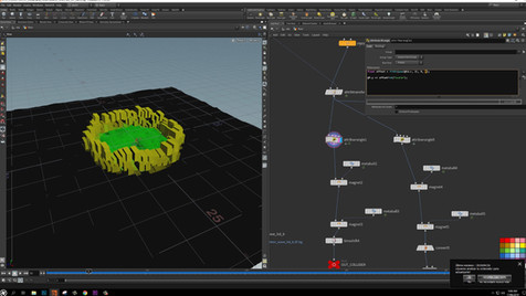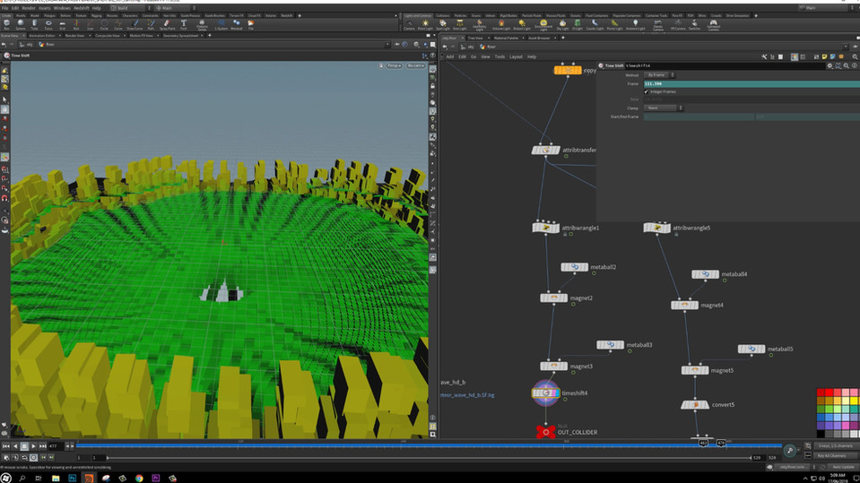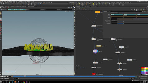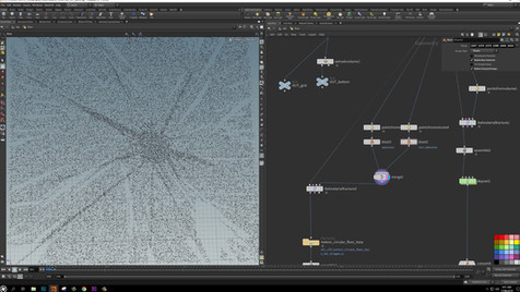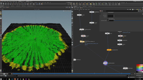 RBD's refers to Rigid Body Objects. Alejandro utilized this solver in conjunction with vex and other creative ways in order to create the explosions, crater, windows, glass and tree. This solver is a union of two different rigid body engines, the RBD engine and the Bullet engine. The RBD engine uses volumes and is useful for complicated, deforming, stacked, geometry.