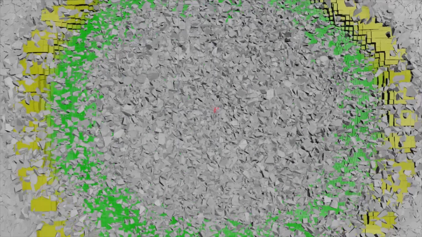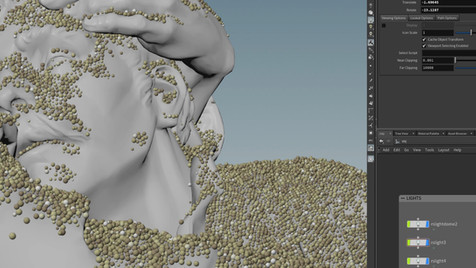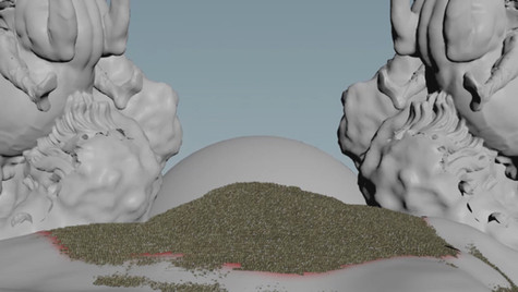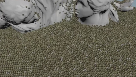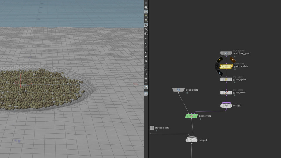 For sand, PBD's was the main advantage when solving this creative problem. The main advantages of Position Based Dynamics (PBD) are its simplicity and controllability: unlike sophisticated solvers such as FLIP and FEM, PBD uses only positional constraints to determine the movement of the points in the system. It resolves penetrations by projecting points to valid locations.