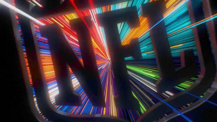 As the graphic transitions, we fly through these team colors to reveal an epic-scale logo that encapsulates the energy and essence of the NFL teams, showcasing their unity and competitive spirit.