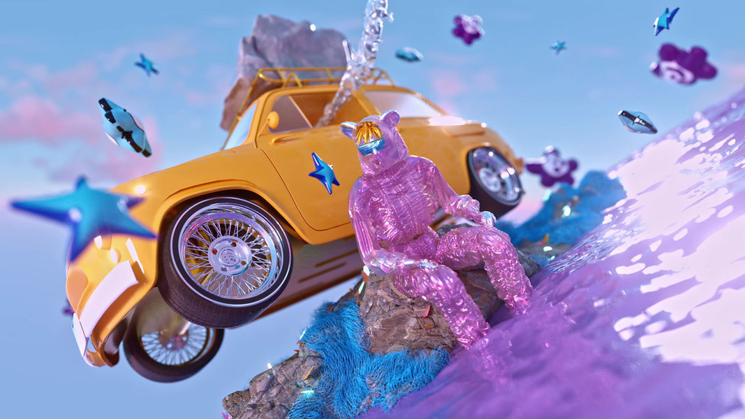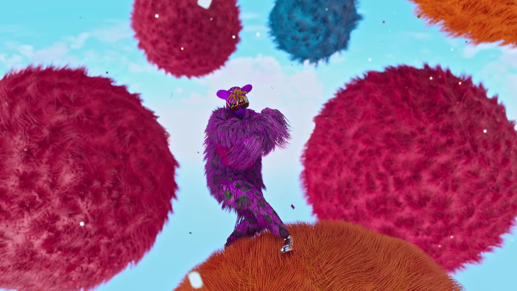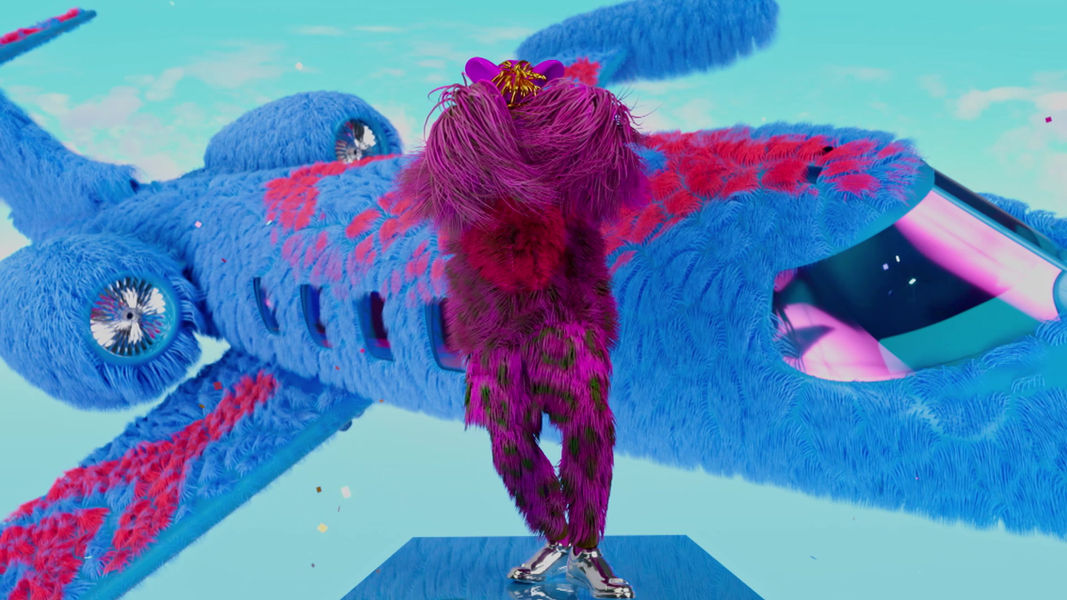 Velvet-soft surrealism for “Mami,” where furry worlds, saturated color, and floating forms create a tactile dreamscape.